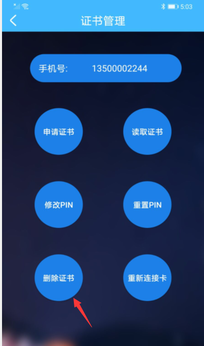 如果查看不到,有两种可能,一个是卡内没有证书,一个是卡内证书被注销(注销的证书的信息平台不保留,直接删除了),此时管理员下一步做的操作是在app"首页->证书管理"读证书,如果有证书,点击"删除证书",然后在"首页->申请记录"重新发证。