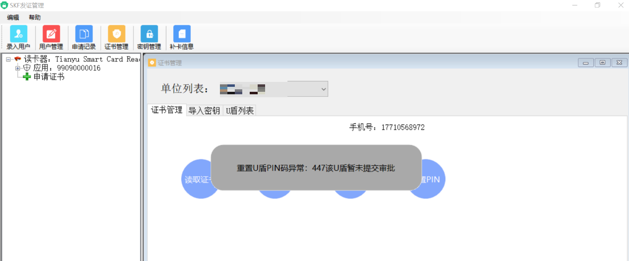 # 重置PIN操作返回"该U盾暂时未提交审批"